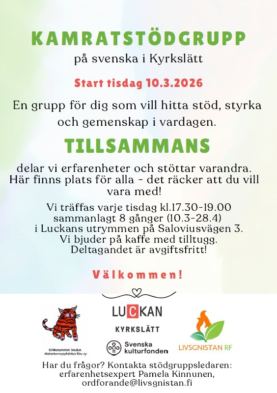 Luckan Kyrkslätt presenterar stolt, för första gången idag, KONSTBUBBLAN för unga i åk 7-9: Ett kostnadsfritt EFTER SKOLAN-HÄNG med betoning på kretivitet och umgänge.Reklam har gått ut till eleverna, men vi hoppas att också vuxna ska sporra unga att idag komma och testa på en kreativ verkstad. Alla vill inte binda sig till terminsavgifter vid…