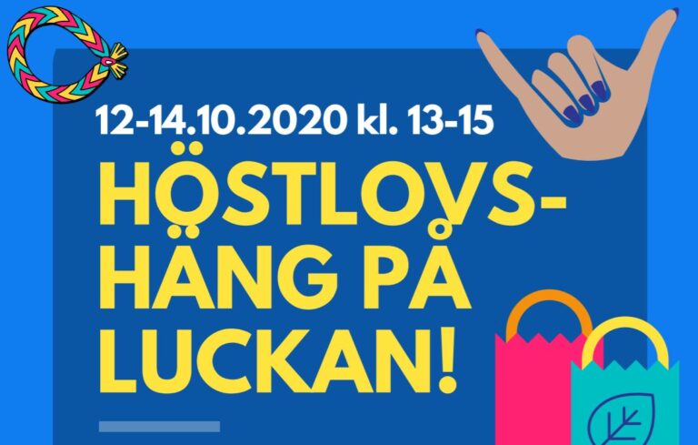 Kom till Luckan på höstlovet! Här kan du pyssla, spela brädspel, måla och delta i utelekar. Gör till exempel reflexer, nagelkonst eller överlevnadsarmband. Programmet fungerar som drop-in främst för elever i lågstadieåldern med eller utan förälder. Vi bjuder på lite frukt och snacks. P.g.a. corona har vi ett begränsat antal platser, max. 15 deltagare ryms…